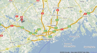 Well, but let me start by giving you a few maps so that you can see where everything is. I live in Tervalampi which is only 40 km away from Helsinki (Map 1). Saarijärvi is 350 km north of Tervalampi and you need 4,5 hours to drive there because of a lack of high ways; not because of the traffic because there is none (Map 2). And the house where Sari, my host mom, grew up in is on a little island called Kurjensaari (saari = island) which is connected to the main land by a bridge (Map 3). The red dot shows you where the house is. The island has, believe it or not, 12 permanent residents (5 of them belong to Sari's family). The other houses are only used as summer cottages.